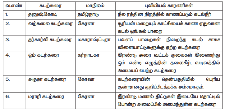 வ.எண். கடற்கரைகள் புவியியல் காரணிகள்