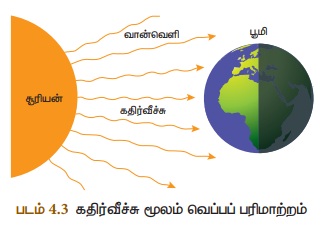 பூமியை வந்தடைகிறது. நெருப்பிற்கு அருகில் நிற்கும்போது வெப்பக் கதிர்வீச்சு மூலம்