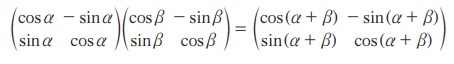 குறிப்பு: சைன் மற்றும் கொசைன் கூட்டல் மற்றும் கழித்தல் சூத்திரத்தை அணி அமைப்பில் எழுதலாம்.