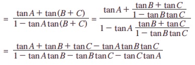 குறிப்பு: (i) A + B + C = 0 அல்லது π எனில், tan(A + B + C) = 0 மேலும் tan A + tanB + tan C = tanA tan BtanC