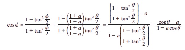 cos A + B/2 ஒரு மெய்யெண் என்பதால் இச்சமன்பாட்டிற்குத் தீர்வு உண்டு. எனவே, தன்மைகாட்டி b2 - 4ac ≥ 0, தருவது யாதெனில்,