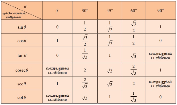 45° = √2 மற்றும் cot45° =1 எனக் காணலாம்.