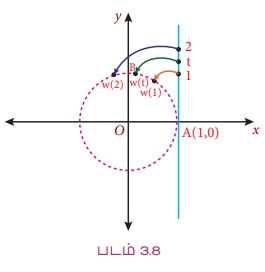 (ii) ஒரு வட்டத்தை ஒரு கோட்டைக்கொண்டு போர்த்தும் போது கிடைக்கும் சார்பு போர்த்தும் சார்பு w(t) (Wrapping function) ஆகும்.