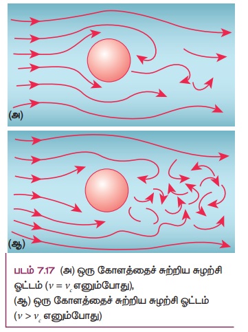 இயங்கும் பாய்மத்தின் வேகம் மாறுநிலைத் திசைவேகத்தை (vc) விட அதிகமானால் இயக்கமானது சுழற்சி ஓட்டமாகிறது. இந்நேர்வில் ஒவ்வொரு துகளிலும் திசைவேகமானது எண்மதிப்பிலும்,திசையிலும் மாறுவதால் தனிப்பட்ட துகள்கள் வரிச்சீர் ஓட்டத்தில் இயங்காது. எனவே சுழற்சி ஓட்டத்தில் துகள்களின் பாதை ஒழுங்கற்றதாக மாறி சுழல் ஓட்டம் அல்லது சுழல் எனப்படும் வட்டங்களில் இயங்கும். (படம் 7.17 (அ) மற்றும் (ஆ) ஒரு படகின் அல்லது கப்பலின் பின்புறமுள்ள நீரின் ஓட்டம் மற்றும் இயங்கும் பேருந்தின் பின்புறமுள்ள காற்று ஓட்டம் ஆகியவை சுழற்சி ஓட்டத்திற்குச் சில எடுத்துக்காட்டுகள் ஆகும்.
