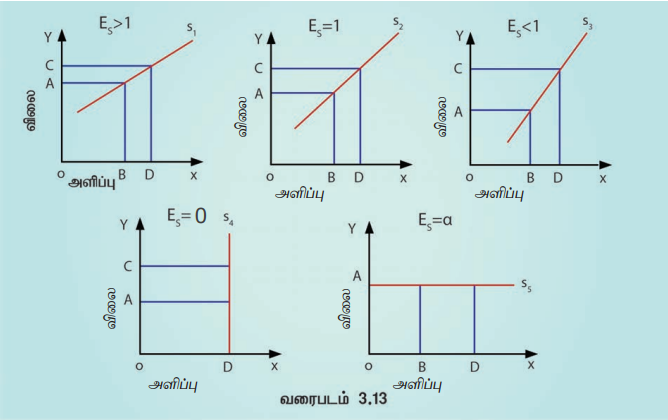 பொருளாதாரம் - அளிப்பு நெகிழ்ச்சியின் வகைகள் | 11th Economics : Chapter 3 : Production Analysis