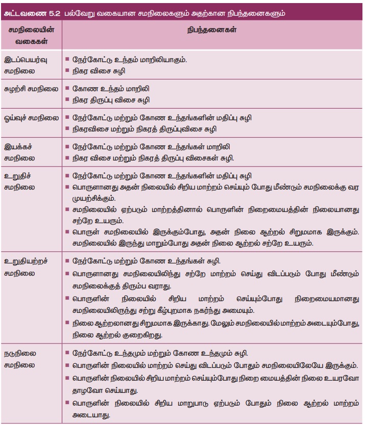 மேற்கண்ட விவாதத்தின்படி, வெவ்வேறான நிபந்தனைகளின் அடிப்படையில் வெவ்வேறு வகையான சமநிலைகளுக்கு வாய்ப்புள்ளது என்ற முடிவுக்கு வரலாம். இவை அட்டவணை 5.2 இல் தொகுக்கப்பட்டுள்ளன.