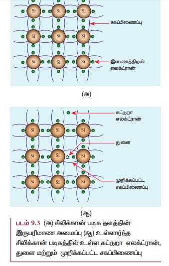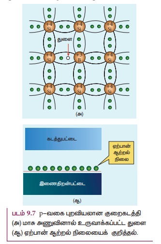 என்பதைப் படம் 9.8 இல் காணலாம். இம்முறையில் உருவாக்கப்பட்ட குறைகடத்திகள் p-வகை குறைகடத்திகள்