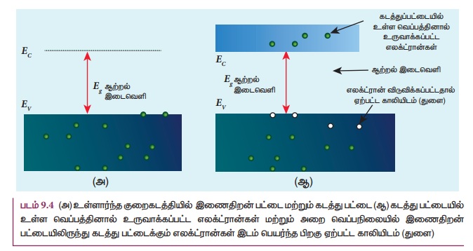 (9.4 ஆ) இல் காட்டப்பட்டுள்ளது. உள்ளார்ந்த குறைகடத்திகளில் மின்னூட்ட ஊர்திகளின் செறிவு