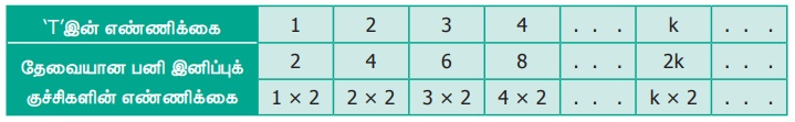 பின்வரும் உருவங்களை அமைக்க எத்தனை பனி இனிப்புக் குச்சிகள் தேவைப்படும்? மாறியின் விதியை எழுதுக.