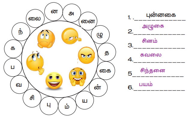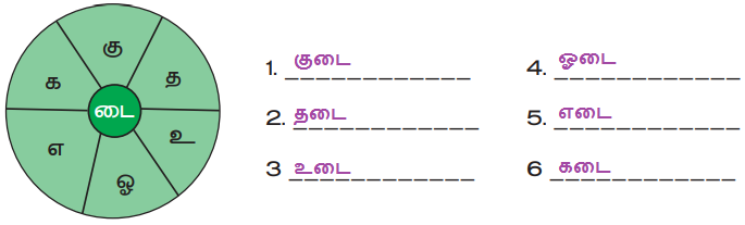 சிறு வட்டத்தில் உள்ள எழுத்தில் முடியும்படி சொல் உருவாக்குக.