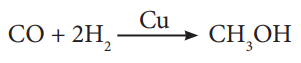 2. தொழிற்சாலைகளில் பெருமளவு கரைப்பானாகப் பயன்படுத்தப்படும் மெத்தனாலை, கார்பன் மோனாக்சைடிலிருந்து தாமிரத்தை (Cu) வினையூக்கியாகக் கொண்டு தயாரிக்கப் பயன்படுகிறது.