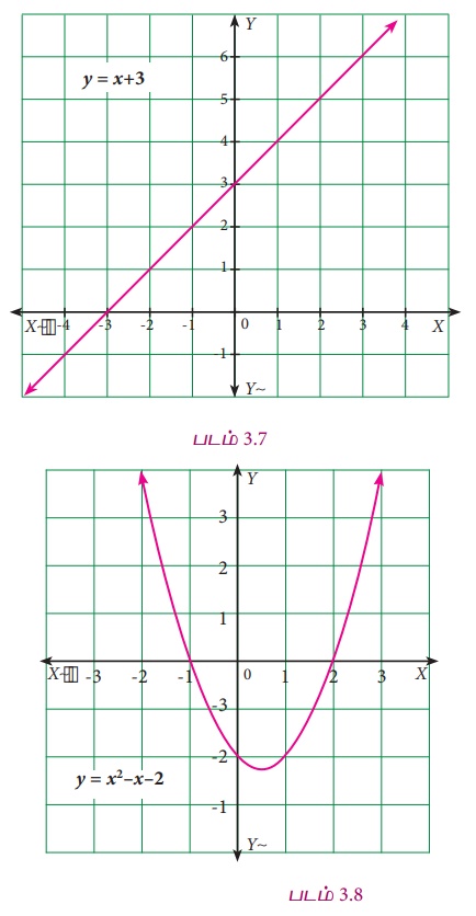 கீழ்க்காணும் இரு வரைபடங்களைப் பார்க்கவும். முதலாவது ஒருபடி மற்றும் இரண்டாவது இருபடி ஆகும். முதல் வரைபடம் x அச்சை (x = −3) ஒரு புள்ளியில் வெட்டுகிறது. மற்றும் இரண்டாம் வரைபடம் (x = −1 மற்றும் x = 2) இரு புள்ளிகளில் வெட்டுகிறது. அவை இரண்டும் y அச்சை ஒரு புள்ளியில் மட்டுமே வெட்டுகின்றன. பொதுவாக, ஒவ்வொரு பல்லுறுப்புக் கோவைக்கும் ஒரு வரைபடம் உண்டு. அந்த வரைபடத்தைப் படமாகக் காட்டலாம். (நமக்குச் சூத்திரங்களை விடப் படங்கள் பிடிக்குமல்லவா?) வரைபடங்கள். அது ஒரு நேர்க்கோடா?, வளைவரையா? அதன் வடிவம் என்ன? எத்தனை இடங்களில் x அச்சை வெட்டுகின்றன? போன்ற பயனுள்ள பல தகவல்களைக் கொண்டுள்ளன.