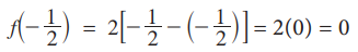 f( − 1/2) = 2 [ − 1/2 − (−1/2) ] = 2(0) = 0