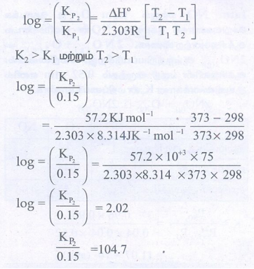 25° C வெப்பநிலையில் ஒரு சமநிலை வினைக்கு Kp = 0.0260 மற்றும் ΔH = 32.4KJmol-1 37o C வெப்பநிலையில் Kpன் மதிப்பினைக் கண்டறிக.