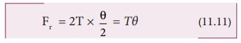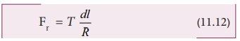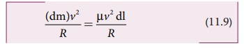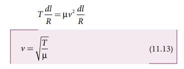 நியூட்டனின் இரண்டாவது விதியை கம்பியின் சிறுபகுதி நீளத்திற்கு ஆர வழியே செயல்படுத்த, சமநிலையில் விசையின் ஆரத்திசை கூறு (radial), மைய நோக்கு விசைக்கு சமமாகும். சமன்பாடு (11.9) மற்றும் (11.12) ஐ சமப்படுத்த, கிடைப்பது