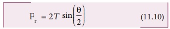 இழுவிசையை T யை கிடைமட்டக்கூறு Tcos(θ/2) மற்றும் செங்குத்துக்கூறு T sin(θ/2) என இரு கூறுகளாகப் பகுக்கலாம். A, B யில் கிடைமட்டக் கூறுகள் சம எண்மதிப்பில் எதிர்திசையில் செயல்படுகின்றன. எனவே, அவை ஒன்றை ஒன்று சமன் செய்கின்றன. நீளம் AB யை மிகச்சிறியதாக கருதுவதால், செங்குத்துக்கூறுகள் A, B யில் செங்குத்து திசையில் வளைவின் மையம் நோக்கி இருப்பதால் அவற்றைக் கூட்ட வேண்டும். தொகுபயன் ஆர விசை Fr ஆனது