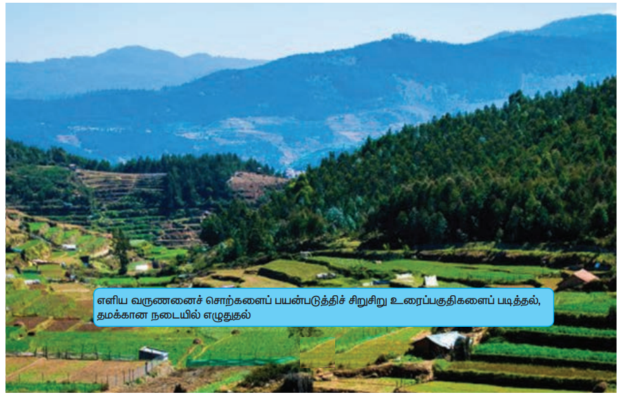 எளிய வருணனைச் சொற்களைப் பயன்படுத்திச் சிறுசிறு உரைப்பகுதிகளைப் படித்தல், தமக்கான நடையில் எழுதுதல்