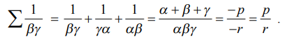 ∑1 α + β + γ = −p மற்றும் ∑3 αβγ = −r