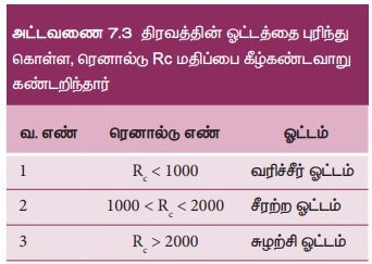 எனவே, ரெனால்டு எண் Rc என்பது ஒரு உருளை வடிவ குழாயின் வழியே செல்லும் பாய்மத்தின் ஓட்டம் வரிச்சீர் ஓட்டமா அல்லது சுழற்சி ஓட்டமா என முடிவு செய்யக்கூடிய ஒரு முக்கியமான மாறி ஆகும்.