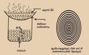 அதனை ஒரு குடுவையின் மீது வைத்து வெப்பப்படுத்தவும். கண்ணாடித் தட்டிலிருக்கும் நீர்
