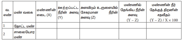 சோதனைகள் - தாவரவியல் செய்முறைகள் - தோட்ட மண் மற்றும் சாலையோர மண் ஆகியவற்றின் நீர் தேக்குதிறன் அறிதல் | 12th Botany : Practicals