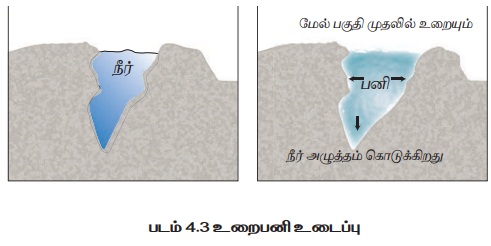 அதிக இடத்தை பிடிக்கும். நீர் விரிவடைவதால் பாறைகளில் பெரும் அழுத்தம்