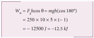 (a) மேல்நோக்கிய இயக்கத்தில் புவியீர்ப்பு விசையினால் செய்யப்பட்ட வேலை