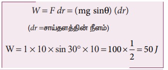 புவியீர்ப்பு விசையின் சாய் வுத்தளத் தின் கிடைத்தளக் கூறினால் (mg sinθ) செய்யப்பட்ட வேலை