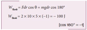 (b) பளுதூக்குபவர் நிறையைத் தூக்கும்போது புவியீர்ப்புவிசை கீழ்நோக்கி செயல்படுவதால் விசையும் இடப்பெயர்ச்சியும் எதிரெதிர் திசையில் உள்ளன. எனவே அவற்றிற்கிடையே உள்ள கோணம் θ = 180°.