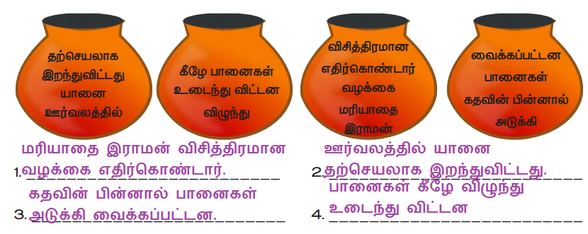 சொற்களை முறைப்படுத்திச் சரியான தொடரமைத்து எழுதுக.