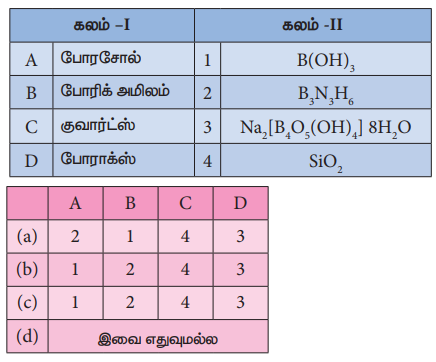 வேதியியல் - p தொகுதி தனிமங்கள் - I : சரியான விடையைத் தேர்வு செய்க | 12th Chemistry : UNIT 2 : p-Block Elements-I